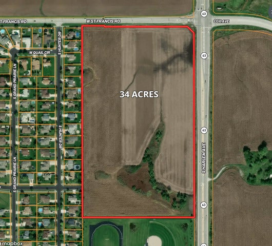 34 total acres at the signalized corner of S. Harlem Avenue and St. Francis Rd in Frankfort, IL. Owners are willing to split the parcel as a five or ten acre commercial corner with the balance as potential residential use. Utilities are available from the Village of Frankfort. Will County has the zoning authority for this parcel. Very good traffic counts and excellent exposure for any type of development.