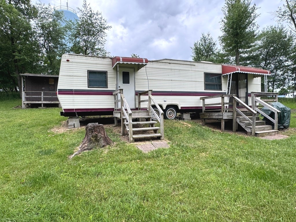 This spacious, pie-shaped lot is located in a cul-de-sac and offers great potential! The property is connected to sewer and includes a well-maintained 1990 American Travel Trailer. Inside, you'll find brand-new flooring, with fresh carpet in the bedroom and living room, and stylish vinyl wood planks throughout. The unit is generously sized, offering plenty of storage space. The lot also features a fire pit, firewood, and a shed. This turnkey package is ready for you to begin your next adventure at Woodhaven Lakes! Contact us today to schedule a showing! Please note that Woodhaven Lakes is a gated recreational community and cannot be used as a primary residence or homestead. You must be accompanied by a broker to view any properties, YOU CANNOT ACCESS THE CAMPGROUND WITHOUT A PASS. Property owner pays the association fees.