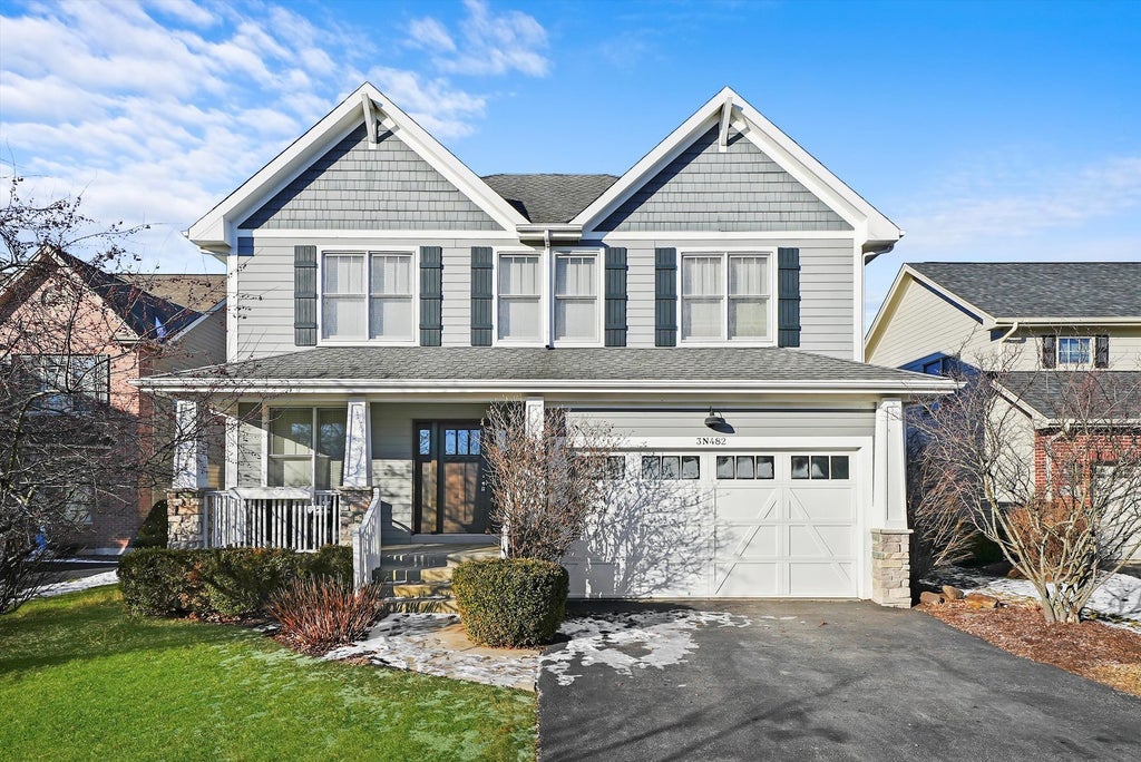 Located in the highly sought after Fox Mill community, you will fall in love the moment you enter this modern, clean two story home! As you walk into the foyer you will love the hardwood floors which run throughout the home, off the foyer is a charming formal living room with tranquil views overlooking the front deck! The home continues to offer a formal dining room and half bath on the main level before entering the grand entertaining space where you will find the chefs kitchen which opens to the family room! The kitchen is bright, modern and clean with a center island that features a breakfast bar, granite counters, 42 inch cream cabinets and SS appliances. The family room offers a fireplace for those chilly winter nights and you will find a breakfast nook off the rear deck! The second level offers four spacious bedrooms, large master suite with a huge spa like master bathroom. The basement features high ceilings and while unfinished currently, this allows you a blank slate to create your dream space while adding value over time! Do not overlook this location, desirable district 303 schools, close to shopping and food options! This is a great home in an area where inventory rarely comes on the market!