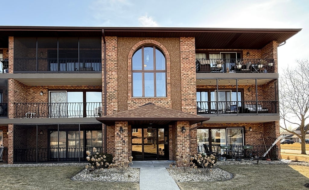 Luxuriously remodeled two bedroom, two full bath unit with full length balcony overlooking a park-like courtyard with an amazing green space. Chef's kitchen with modern shaker cabinets, stainless steel farmhouse sink, pantry and huge island with seating. Separate table space adjacent to kitchen. Low maintenance, Waterproof vinyl plank flooring installed in all high traffic areas. Two generous size bedrooms including a master suite with separate closets and a spa-like, private bath. Laundry room features ample storage and full size washer and dryer included in sale. A brick 2 car garage features additional storage as well. New windows installed. Central air. Low real estate taxes and monthly HOA assessments! Conveniently located near parks, trails, grocery stores, shops and restaurants in a highly sough after location in Orland Park.