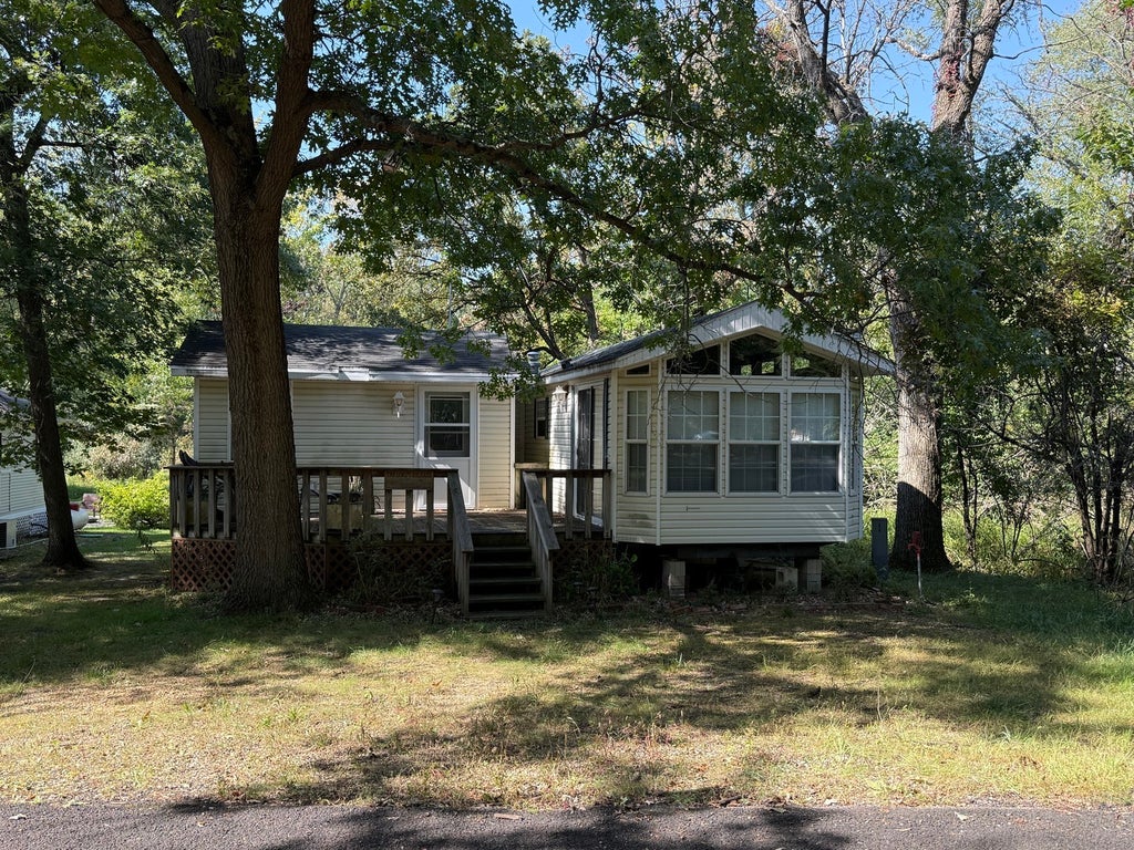 Beautiful lot with common ground to the rear and side for privacy. Lot boasts a 2001 Trophy Park Model with 1 bedroom, all furniture and appliances stay, water heater, 16x18 finished room addition. Well maintained throughout. Nice living room area with kitchen attached and new refrigerator. The bathroom has a shower and bathtub. Step outside and relax on the front deck! Around the back of the lot, there is a shed, common area and fire pit. Call today for a showing! Please note that Woodhaven Lakes is a gated recreational community and cannot be used as a primary residence or homestead. You must be accompanied by a broker to view any properties, YOU CANNOT ACCESS THE CAMPGROUND WITHOUT A PASS. Property owner pays the association fees.