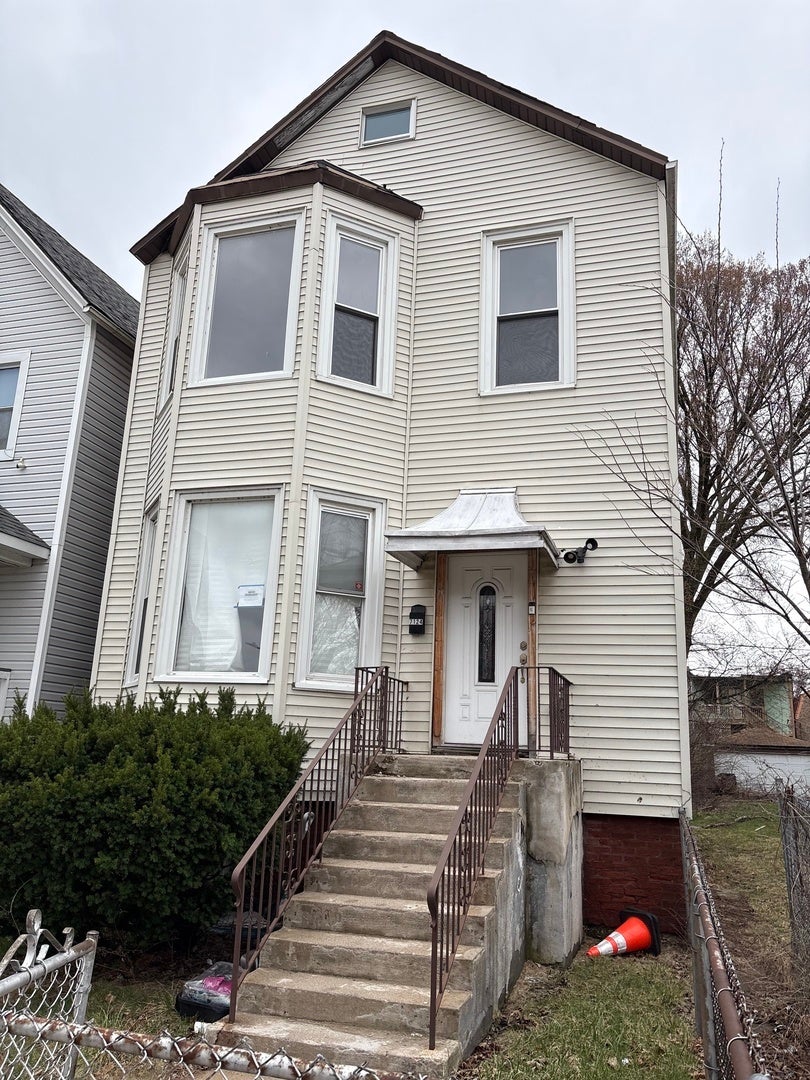 Fantastic opportunity to finish out this 2-unit building on a large, fenced city lot. The 2nd level unit is fully finished and features 3 oversized bedrooms, a open kitchen and open living room. The main level unit is down to the studs and awaits your finishing touches. The full basement is unfinished as well. Lots of parking in the concrete pad in the back or the street in front of the building. Conveniently located near food, shopping, schools and the highway.