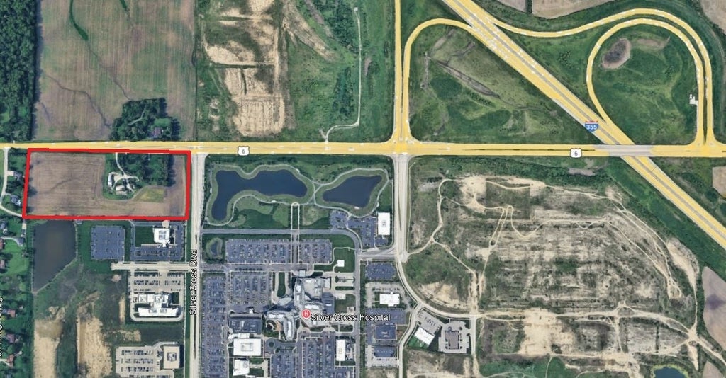 Price is per square foot based on 13+ Acres as surveyed. Front door exposure.....to Hospital & supporting MEDICAL BLDGS...., + I-355. 550' on SC Blvd. + 980' on US Rte. 6. Incorporated under special Hospital / Medical uses yet still zoned as farmland which will require rezoning to intended use(s). Village of New Lenox reports it would like to see C-3 Commercial development. Lots of action especially focused on the 'GO TO HOSPITAL" for the entire southwest Chicagoland area. Enormous traffic counts. Hottest location in New Lenox. Improvements are typical farm-related buildings.