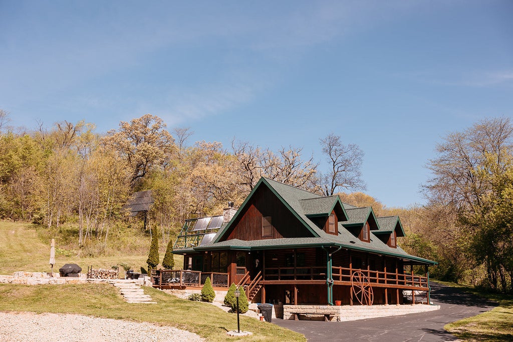 Luxury cabin and Chalet guest house overlooking a pond with 40 acres of stunning Jo Daviess County timber land. The 5000 sq ft real log cabin and 1100 sq ft Chalet guest house were made to entertain and house a large family or group of friends. The large master suite is on the main floor with 2 more large bedrooms upstairs and another bedroom suite in the finished basement. The kitchen is large and spacious with both a dining nook/eating area and a large formal dining room off the great room. The large great room is open to the second floor with a beautiful real stone fireplace as the center piece of that room. As mentioned, the finished basement is ready for action with game tables, TV area and wet bar, as well as a wood burning stove to keep things cozy on cold nights. There is also a large and beautiful limestone patio area with campfire pit off the side of the cabin overlooking the pond and timber. The Chalet guest house may be the coolest part of the whole deal as it can be accessed through an enclosed walkway from the main cabin and has its own private access separate from the house as well. The Chalet is basically a large suite with its own bedroom, bathroom and kitchen as well as another wood burning stove to cozy things up on winter nights. There is a huge 3 car garage under the Chalet for vehicles and storage. Perhaps the most amazing thing about this entire package is that the entire property is set up to operate completely off the grid with Solar panel and generator system to run everything. No electric bill, no water bill, completely self-sufficient property and with brand new roofing on cabin and Chalet. There is also a 30 x 40 ft log barn/garage with concrete floors, insulated and heated with plenty of room for more vehicles, tractors and toys as well as a workshop area. Last but not least is the gorgeous 40-acre parcel included in this sale. The pond has been mentioned already which is loaded with fish that are easy to catch and the pond has been lined with rocks and an air pump installed to keep water moving. The timber is classic Jo Davies County rolling hills and valleys with mowed trails throughout for hiking and access to hunting locations. The hunting for both deer and turkey on this property is not just good it is excellent, outstanding, way above average. The property and this area in general have high deer numbers and there are some huge bucks living on this 40 acres. They are seen from the cabin on a regular basis! The property is licensed for AIRBNB and books up immediately whenever the owners want to rent it and all the reviews of the guests are top with many 5-star reviews. There is nothing on the market in Jo Daviess County like this property right now so call today to set up a private showing while it is still available!