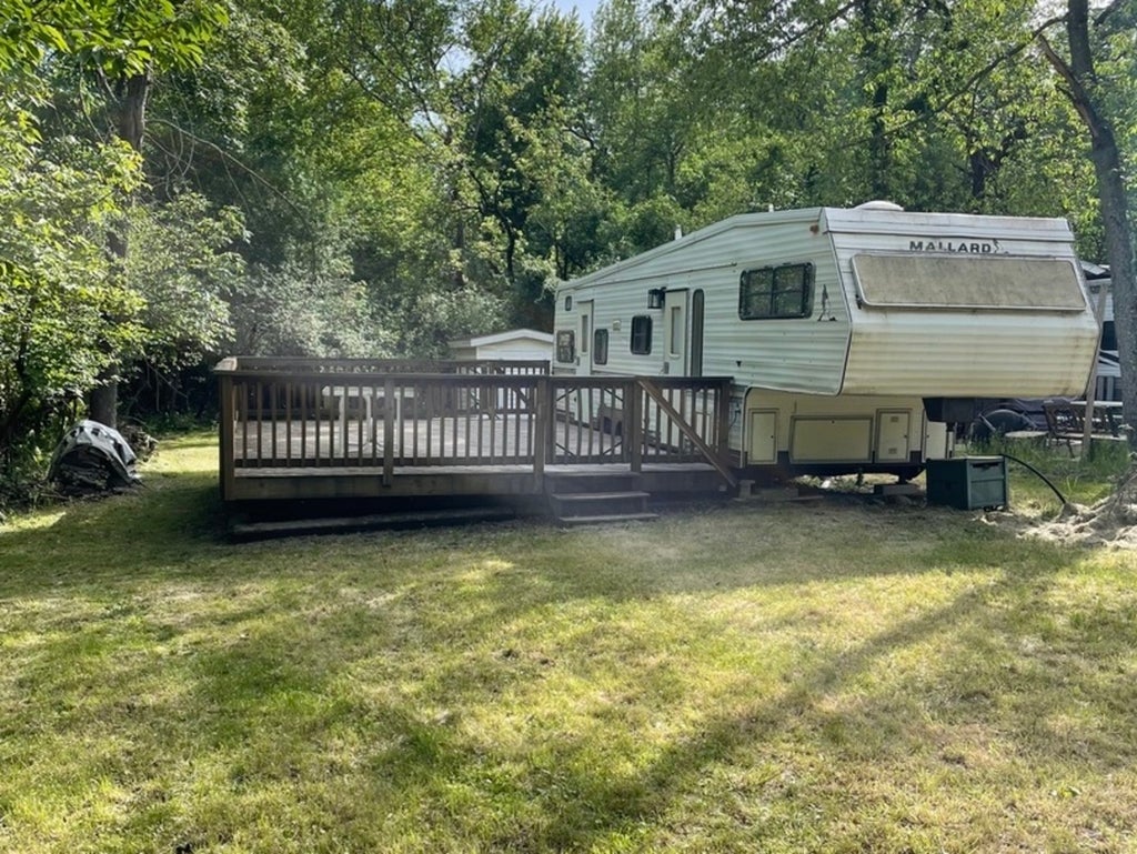 Nice level lot with so much potential! The trailer features a remodeled knotty pine 1978 Mallard Coach Travel Trailer with 20 gallon electric water heater. Trailer has been remodeled with wood finishing's throughout and newer flooring. There is a large covered deck to entertain and relax with guests. Around the back of the lot, you will find a shed, fire pit, and common area to the rear. Call today for a showing! Please note that Woodhaven Lakes is a gated recreational community and cannot be used as a primary residence or homestead. You must be accompanied by a broker to view any properties, YOU CANNOT ACCESS THE CAMPGROUND WITHOUT A PASS. Property owner pays the association fees.