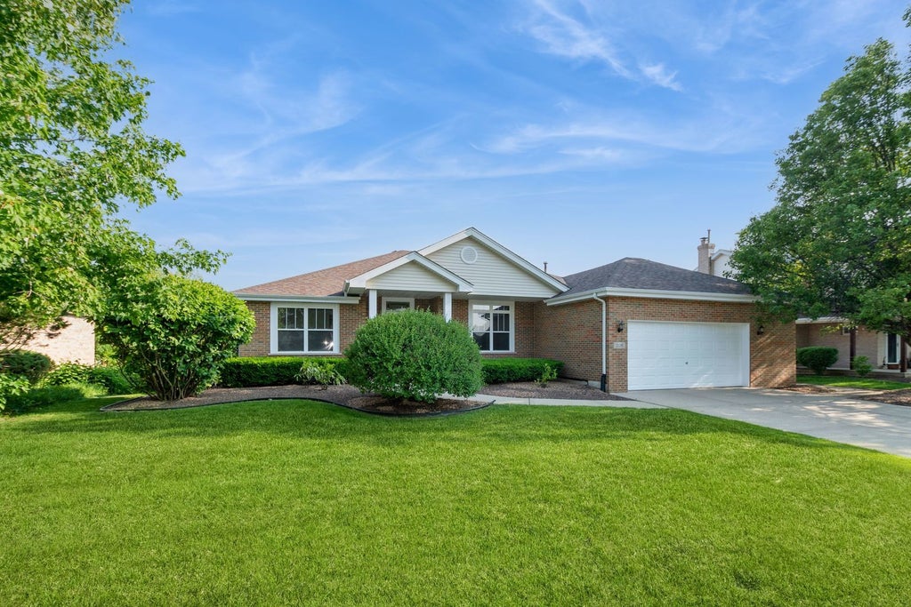 Welcome to your dream home! Don't miss this quality-built, beautifully and meticulously maintained 3-bedroom, 2.5-bath ranch offering stunning pond views from nearly every window. This lovely home features a thoughtfully designed layout with vaulted ceilings, large windows that fill the home with natural light, and spacious living and dining rooms. The kitchen boasts ample cabinetry, including a pantry, stainless-steel appliances, breakfast bar seating, and a separate eat-in area with direct access to the deck, overlooking the inviting living room with its cozy brick fireplace. The primary suite includes a walk-in closet and a private en suite with a whirlpool tub, separate shower, and double vanity. Two additional bedrooms are located on the opposite side of the home for added privacy, sharing a full hall bath. The full lookout basement offers 9-foot ceilings, a half bath, rough-in for a shower, gas hook-up, and a second brick fireplace, ready for your finishing touches. Additional highlights include hardwood floors in the foyer and living room, an oversized 2.5-car garage, generous closet space, a sprinkler system, and paver steps leading to a charming paver patio. Recent updates include fresh paint throughout, new carpet, refinished hardwood floors, a new sump pump (2025), ejector pump (2022), hot water heater (2020), and roof (2018). Step into the backyard and enjoy a peaceful retreat with direct access to a serene catch-and-release fishing pond. This tranquil setting offers the perfect backdrop for outdoor living. Come see it for yourself!