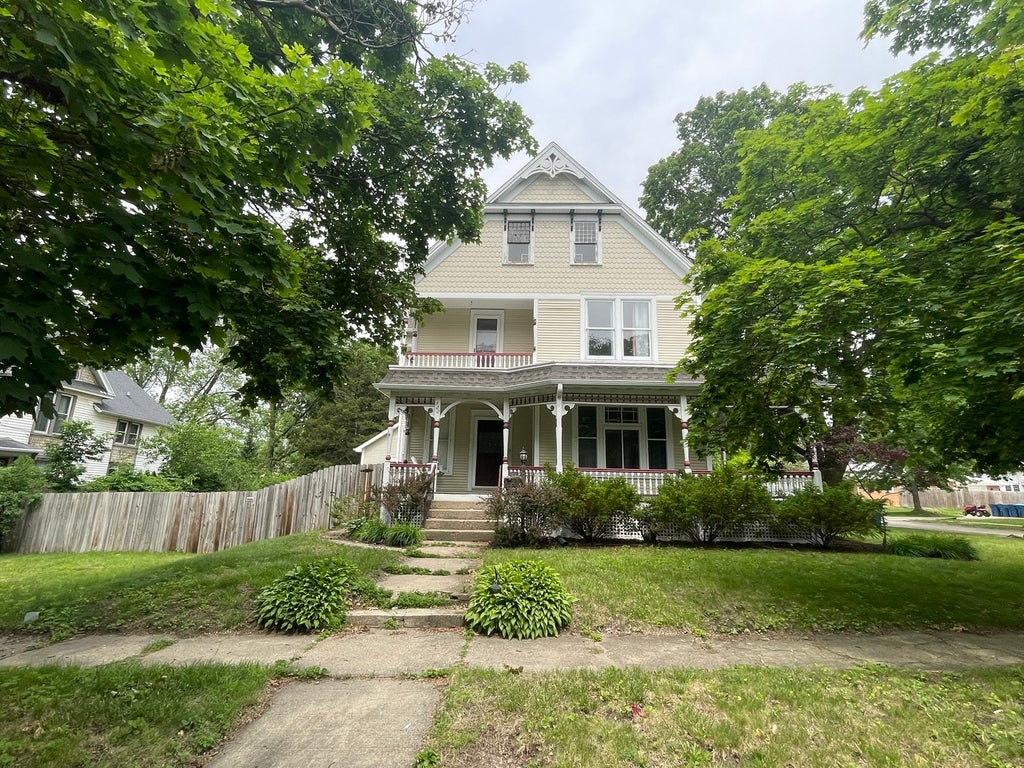 Beautiful Victorian home with gorgeous hardwood floors adding warmth and character, as well as a stunning open staircase as the focal point of the home. Natural woodwork, pocket doors, crown molding and dentil molding add a touch of elegance throughout the home. The spacious workable kitchen with breakfast nook has plenty of cabinets and counter space. The separate dining room offers plenty of room for even the largest dining set and hutch. You'll love the main floor family room, separate from the living room with cozy gas fireplace. Enjoy 3 large bedrooms on the upper level, all with large closets, perfect for a growing family. The home includes 2 1/2 baths, providing convenience and comfort. The master bath offers a luxurious retreat with jetted tub and separate shower. There's a handy main floor laundry with 1/2 bath. You'll love the storage space provided by the walk up attic. The home is heated with warm, radiant heat and cooled by central air The Victorian home wouldn't be complete without a wrap-around porch. This one comes complete with porch swing! New owners will get the benefit of the brand NEW ROOF (2025). The fenced yard provides a safe and private outdoor space, while the oversized 2 car attached garage is large enough for vehicles, toys and lawn equipment. There's so much to offer in this beautiful home! PORCH RENOVATIONS ARE PLANNED AND WILL BE PAID FOR AT CLOSING!