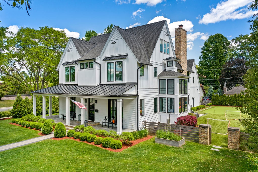 Timeless elegance meets modern functionality in this exceptional walk-to-town Hinsdale residence, nestled on a rare half-acre lot with 101 feet of frontage. This newer custom modern farmhouse captivates from the curb and continues to impress inside with 5-inch wide-plank hardwood floors, floor-to-ceiling windows, and meticulous design throughout. At the heart of the home is a chef's dream kitchen-featuring top-of-the-line appliances (including two dishwashers), an oversized 5'x8' island ideal for entertaining, an eat-in breakfast area/sun room, and seamless flow into the open-concept formal and casual living spaces. The main floor also offers a dedicated home office with custom glass doors, a playroom, and an extra-large mudroom with secondary laundry and a command center-all connected to a convenient 3-car attached garage. Entire home has been updated with soundproofing window inserts by an acoustical engineer. Upstairs, you'll find four ensuite bedrooms, including a luxurious primary suite with a private sitting area with a sauna, two separate, expansive walk-in closets-his and hers-and a spa-like bathroom retreat, along with a second floor laundry room. The third floor hosts a private guest suite with its own bath and generous closet. The recently reimagined lower level is an entertainer's paradise and a family haven: featuring a cutting-edge golf simulator under soaring 13-foot ceilings, a versatile exercise room or sixth bedroom, a full bath, a turf-covered soccer field/basketball court designed for year-round fun, and an unfinished wine cellar awaiting your vision. The basement does have hot/cold water with drain available for buildout of bar if needed. Additional updates include high-end window inserts for soundproofing and lush turf and a professional grade putting green installed in the backyard-perfect for low-maintenance outdoor enjoyment. The backyard entertainers dreams continues with a built out patio, an outdoor tv/sitting area, and an attached gas grill. Ideally located within walking distance to Hinsdale's top-rated schools, Hinsdale pool, charming downtown, and train stations, this home blends classic sophistication with today's most desired amenities.