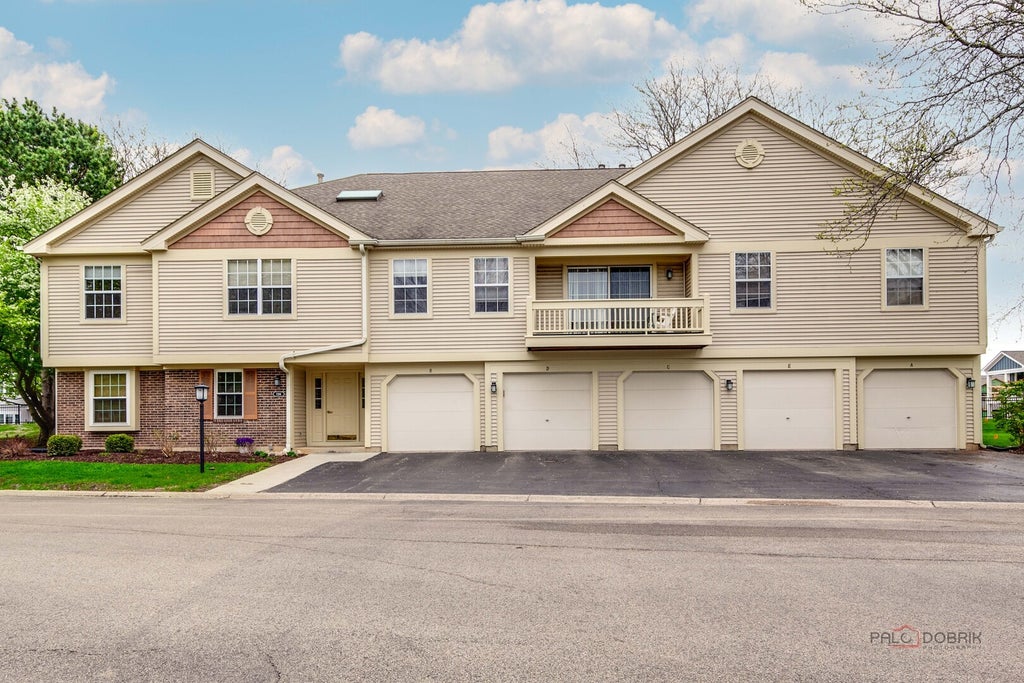 COMPLETELY REMODELED IN CAMBRIDGE CHASE-JUST UNPACK AND START MAKING MEMORIES! Located in highly rated Vernon Hills schools and just minutes from shopping, dining, Metra, and more, this move-in-ready 2nd-floor end-unit condo offers the perfect blend of comfort, style, and convenience. Truly maintenance free living with the HOA handling landscaping, snow removal, exterior maintenance, interior common areas, water, and garbage. As you enter, the vaulted ceilings create an open, welcoming feel, while the wood-burning fireplace adds warmth and charm-perfect for cozy evenings at home. Step down to the inviting living room with adjoining dining room-an ideal space for both relaxing evenings and effortless entertaining-with open views to the beautifully remodeled kitchen. The completely remodeled kitchen blends modern style with everyday function, showcasing quality stainless-steel appliances, crisp white cabinetry with abundant storage, and a dedicated pantry that keeps everything from snacks to small appliances neatly tucked away. Two generously sized bedrooms offer comfort and privacy, each featuring walk-in closets outfitted with custom organizers to maximize space and keep everything in its place. The updated bathrooms showcase modern finishes and fresh design, while a convenient in-unit laundry room adds everyday ease to this well-appointed home. After a long day, kick back and relax on your private corner balcony while sipping on your favorite drink, or head down to the sparkling community pool just seconds from your door. Recent upgrades included: New Unit Fire Entry Door installed 2yrs ago. Electrical upgrades - all switches and outlets were replaced with modern finishes, including dimmers, built-in night lights , and USB's throughout unit. This is a must-see!