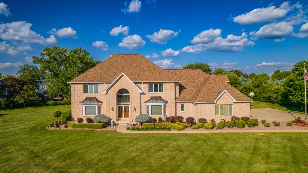 Exceptional Space, Style & Setting in Briarcliff! This impeccably maintained over 4,400 sf all brick home offers 6 bedrooms, 5.5 baths, a full finished basement, and a 3 car attached garage set on a beautifully landscaped half acre lot in the desirable Briarcliff subdivision. Enjoy peaceful walking trails, lakes, parks, and the nearby Kankakee River, all just steps from your door. Step inside the grand foyer with soaring ceilings and a striking catwalk overlook. To one side, a sun-drenched living room welcomes you with oversized windows, while a formal dining room with elegant entryway graces the other. The heart of the home is the massive two-story family room featuring a stunning fireplace and wall of windows that fill the space with natural light. The expansive kitchen is a chef's dream with a center island, walk-in pantry, double ovens, and full appliance package. Adjacent is a casual dining nook that leads to a circular, window lined all seasons room perfect for year round enjoyment. Also on the main level: a dedicated office with custom built-ins, a full bath, half bath, and spacious laundry room. Could perfectly double for main floor related living. Upstairs, the luxurious primary suite features double doors, two walk in closets, dual vanities, whirlpool tub, separate shower, and a private water closet. A second ensuite bedroom offers its own full bath, while bedrooms 3 and 4 are connected by a Jack and Jill bath. An additional study or flex room completes the upper level. The finished basement adds even more versatility with two additional bedrooms, a full bath, a second family room with brick fireplace, and a full second kitchen plus multiple bonus rooms ideal for a home gym, playroom, or storage. Step out back to your oversized deck and take in the privacy of a mature, tree lined yard. Other highlights include a whole house generator, central vac, lightning rods, and an extra storage room in the 3 car garage. This is a truly rare opportunity to own a spacious, thoughtfully designed home in one of the area's most sought after communities. A must see to fully appreciate the lifestyle and layout it offers!