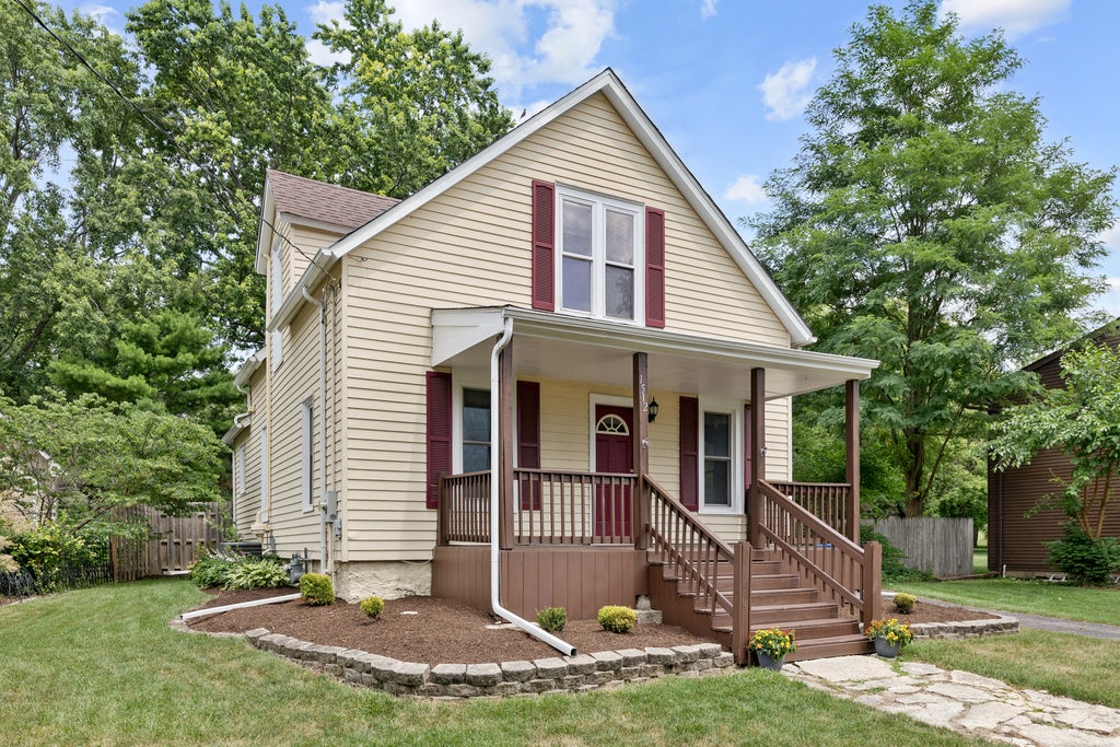 Great curb appeal with a huge front porch that welcomes you into this renovated 2 story farmhouse located close to downtown St. Charles. Enjoy the river walk. 3 bedrooms and 2 full baths. The first floor features dark plank wood floors with an open floor plan, first floor bedroom could make a fantastic office, updated kitchen with granite and new stainless steel appliances. French doors lead to HUGE deck overlooking a large, deep fenced backyard. 2 car detached garage. The second floor contains two good sized bedrooms and a renovated full bath. Water filtration system in kitchen. Basement is extra storage space (full with 5' ceiling only). Furnace & AC 2025, Water Heater 2024,Back Deck replaced 2023, carpet 2024. Fresh mulch. Professionally cleaned for new buyers. This beautifully updated farmhouse so close to downtown St. Charles could be your new home!