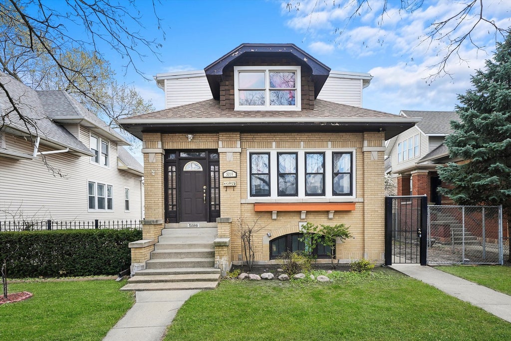 Charming and Spacious North Mayfair Brick Bungalow A rare oversized bungalow with 8 bedrooms, 3 full bathrooms, and 3,800 sq. ft. of living space, located directly across from Palmer Elementary School. With three fully finished levels and thoughtful updates throughout, this move-in ready home is perfect for large or multi-generational families. Recent Updates: New roof, windows, living & dining room flooring, kitchen, AC, and water heater (2024) Two bathrooms updated in 2017 Step inside to a bright, open living room with new flooring and lots of natural light. The main level features a formal dining room, an updated kitchen with granite countertops and stainless steel appliances, two bedrooms, a full bath, and a laundry room. The second floor offers four generously sized bedrooms and another full bath-ideal for family, guests, or work-from-home space. The fully finished basement includes two additional bedrooms, a full bath, a spacious rec room, second laundry area, and plenty of storage-perfect for in-laws, guests, or rental potential. Enjoy the fully fenced backyard, a concrete patio great for entertaining, and a two-car detached garage. All located on a quiet, tree-lined street with easy access to I-90/94, bus station, parks, shopping, and dining. This is a truly spacious, updated, and versatile home in the heart of North Mayfair-schedule your private tour today!