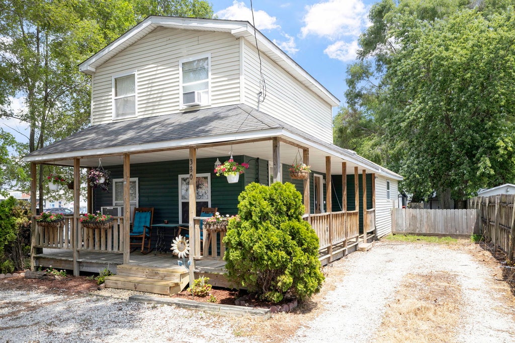 Charming, freshly updated 3 bedroom, 2 bathroom farmhouse with beautiful shabby chic flare! Home features a spacious living room, large eat-in kitchen with numerous updates, 2 main level bedrooms, newly updated main floor bathroom, and a sprawling second floor primary suite with walk-in closet and en-suite bathroom! Recent updates include a new rear deck, freshly painted interior, new trim, new flooring on the main level, updated lighting fixtures, new hot water heater, house roofs are less than 4 years old, and more! Additional amenities include a wrap-around front porch, fenced-in backyard, and a spacious 12' x 28' detached garage is temporarily set at the rear of the lot but can be relocated on the property for a small fee. Wonderful Reed-Custer school district and low property taxes! Call to schedule your home tour today - this gem will not last long!