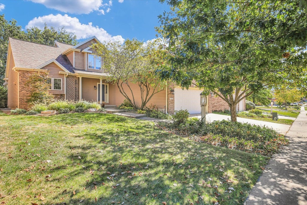 Step in and fall in love with the soaring ceilings, plenty of natural light, hardwood flooring. Expansive living room has gas fireplace, built to fit entertainment center. Kitchen fully equipped with appliances, lovely wood cabinets. Custom made book shelf posses as a tall kitchen island. Three season room with gas stove for cozy nights and exterior access. Primary bedroom has large walk in closet, double vanities, whirlpool tub and separate shower. Three bedrooms in lower level all with egress windows, and share full bath, recreation room, plenty of storage. One owner home custom built with updates Roof 2021, H20 heater 2017, HVAC 2018 dishwasher 2020. The double garage has tall ceilings with a climate-controlled work room (9 x19). Enjoy the Private level rear yard with retaining wall, nicely landscaped oasis. Enjoy not mowing or shoveling snow. Travel the trails surrounding the subdivision with ponds, fountains. Hop, skip or jump over to the recreational dining/ shopping.