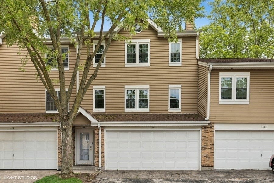 Spacious & Stylish 3-Story Townhome Not Far Downtown Woodstock! Nearly 2,000 square feet of thoughtfully designed living space awaits in this beautifully updated 3-bedroom, 3.5-bath townhome-perfectly positioned near the heart of downtown Woodstock. Enter through the private front door or attached garage into a welcoming foyer with ceramic tile and a generous coat closet. The main level features wide plank vinyl flooring and a warm, inviting living room centered around a classic brick fireplace, flanked by built-in shelving. The kitchen has been tastefully updated in today's on-trend colors, showcasing stainless steel appliances, stylish lighting, and breakfast bar seating. A separate dining area opens to a cozy back deck-ideal for entertaining-complete with built-in benches. A unique split staircase connects both the kitchen and living room to the upper level, where a spacious loft offers the flexibility for a home office, creative space, or an easy conversion to another bedroom. The vaulted primary suite impresses with a walk-in closet and a stunning, fully renovated en-suite bath featuring dual sinks and luxurious heated floors. The finished lower level adds even more versatility, offering a third bedroom or flex space, a third full bath, and a laundry area. With easy access to Rt. 47 and Rt. 14, and just minutes from Metra train station, Northwestern Medicine Woodstock Hospital, shops, restaurants, and more-this home delivers the perfect balance of convenience, comfort, and style.