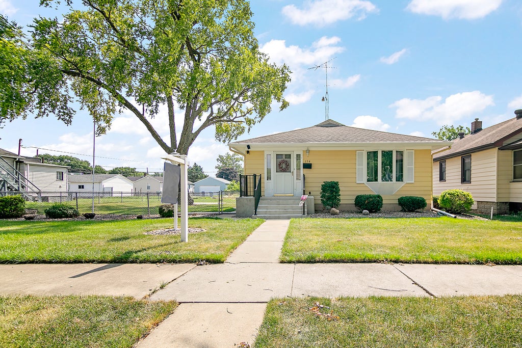 Beautifully maintained! This classic ranch style home offers timeless charm and thoughtful updates. The spacious living and dining area is filled with natural light and highlighted by beautiful hardwood floors. The efficient kitchen features 42" cabinets and excellent storage. A vintage inspired hall bath showcases stylish tile and a retro mirror, adding character to the home. The full basement is an entertainer's dream with a huge rec room, a dry bar, and an entire wall of built-in storage. You'll also find a large laundry/utility area and a workshop an ideal use of space. Set on two lots, the fenced in property boasts mature landscaping, concrete patio and a 3-car garage. This home is truly a rare find beautifully cared for and ready for its next chapter!