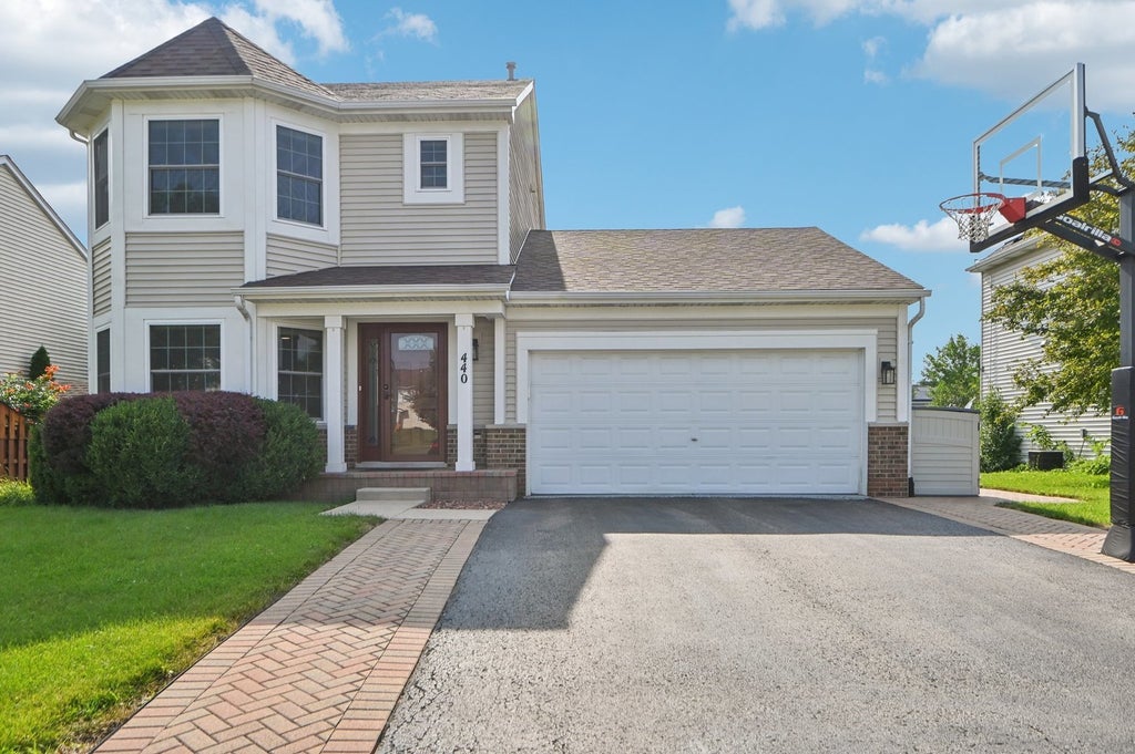 Modern Comfort Meets Smart Upgrades in Marquette's Estates. Step into this meticulously maintained 3-bedroom home in the sought-after Marquette's Estates Subdivision-updated throughout and truly move-in ready. Blending contemporary finishes with thoughtful upgrades, this home delivers both comfort and convenience in every space. The main level offers a functional and inviting layout, featuring hardwood flooring in the living and dining areas. The remodeled kitchen (2022) is outfitted with stainless steel appliances and modern cabinetry-perfect for meal prep and entertaining alike. Upstairs, the primary bedroom includes a generous walk-in closet, and the full bathroom was completely overhauled in 2023 with sleek, up-to-date finishes. The powder room was also refreshed in 2022. A finished basement provides additional living space along with ample storage, and the high-efficiency washer and dryer (2020) are conveniently located on the second floor for easy access. Notable Upgrades Include: All new windows and doors (2023), new siding (2024), interior doors replaced (2021), new roof (2022), new furnace and A/C (2020), whole home water softener, finished 2-car garage w/ new epoxy floors. Outside, a custom paver patio offers a beautiful setting for gatherings or quiet evenings, complete with a stone walkway that connects seamlessly to the front of the home-enhancing curb appeal and everyday function. Located in top-rated Plainfield School District 202.
