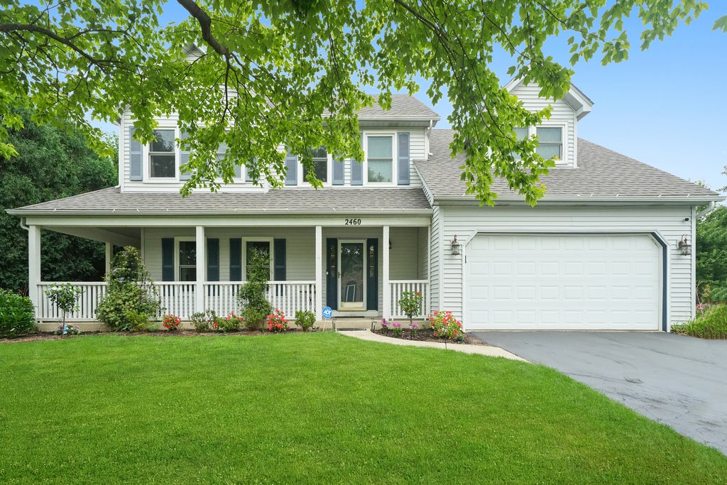 Tucked away in one of Aurora's most peaceful pockets and surrounded by mature trees on a quiet cul-de-sac in the desirable Oakhurst subdivision, this home offers the perfect blend of tranquility and convenience. The wraparound porch and beautifully landscaped yard set the stage for this warm and inviting 2,500-square-foot retreat. Inside, you'll find gorgeous hardwood floors throughout much of the first floor and a layout designed for both comfort and entertaining. The sunken, vaulted family room features a handsome beamed ceiling, a gas log fireplace, and custom bookcases. The spacious kitchen includes white cabinetry, granite countertops, a center island, stainless steel appliances, and a generous eating area. The formal living and dining rooms are filled with natural light and perfect for gatherings. Upstairs, four generously sized bedrooms with excellent closet space. The primary suite features a granite-topped double vanity and an extra-large shower. The basement offers additional storage and is ready for your finishing ideas. Step outside to your party-sized deck, perfect for entertaining, overlooking a serene backyard. Located in an active pool and clubhouse community, Oakhurst also offers tennis courts, basketball courts, volleyball, soccer fields, and baseball diamonds. This home is part of the highly acclaimed District 204, served by Steck Elementary, Fischer Middle School, and Waubonsie Valley High School. Experience the serenity this house has to offer today!