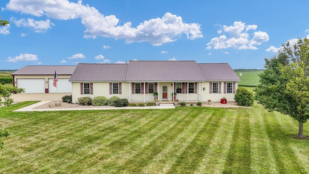 Welcome to this stunning ranch estate in the Paxton School District, offering the perfect blend of modern updates, timeless finishes, and exceptional outdoor living. Nestled on just over 3 acres in Champaign County, this property features over 3,600 square feet of living space with a fully finished basement, creating an entertainer's dream both inside and out. Step inside to find stone countertops, rich cabinetry, and upgraded appliances in the kitchen, complemented by a spa-like primary suite with a luxurious walk-in shower. The basement offers a full theater room and abundant additional living and entertaining space. The outdoor spaces are a true extension of the home, designed for gatherings and relaxation. A 20x40 in-ground pool with a new liner anchors the backyard, surrounded by multiple entertaining zones, including a turfed activity area and exterior bar spaces perfect for hosting. All buildings flow effortlessly to the pool area, enhancing the indoor-outdoor lifestyle. Car enthusiasts and hobbyists will appreciate the seven bays of garage space, including a heated and cooled outbuilding with forced air and a bathroom, plus an additional attached shed. A new whole-home generator (approx. 1 year old) and geothermal heating provide efficiency and peace of mind, while the metal roof (approx. 2015) offers durability for years to come. With tons of updates, polished finishes, and unmatched entertainment spaces, this home combines luxury, functionality, and country serenity. WHILE YOU ARE THERE TRY AND FIND THE SECRET DOOR....sure to satisfy every curious kids dream