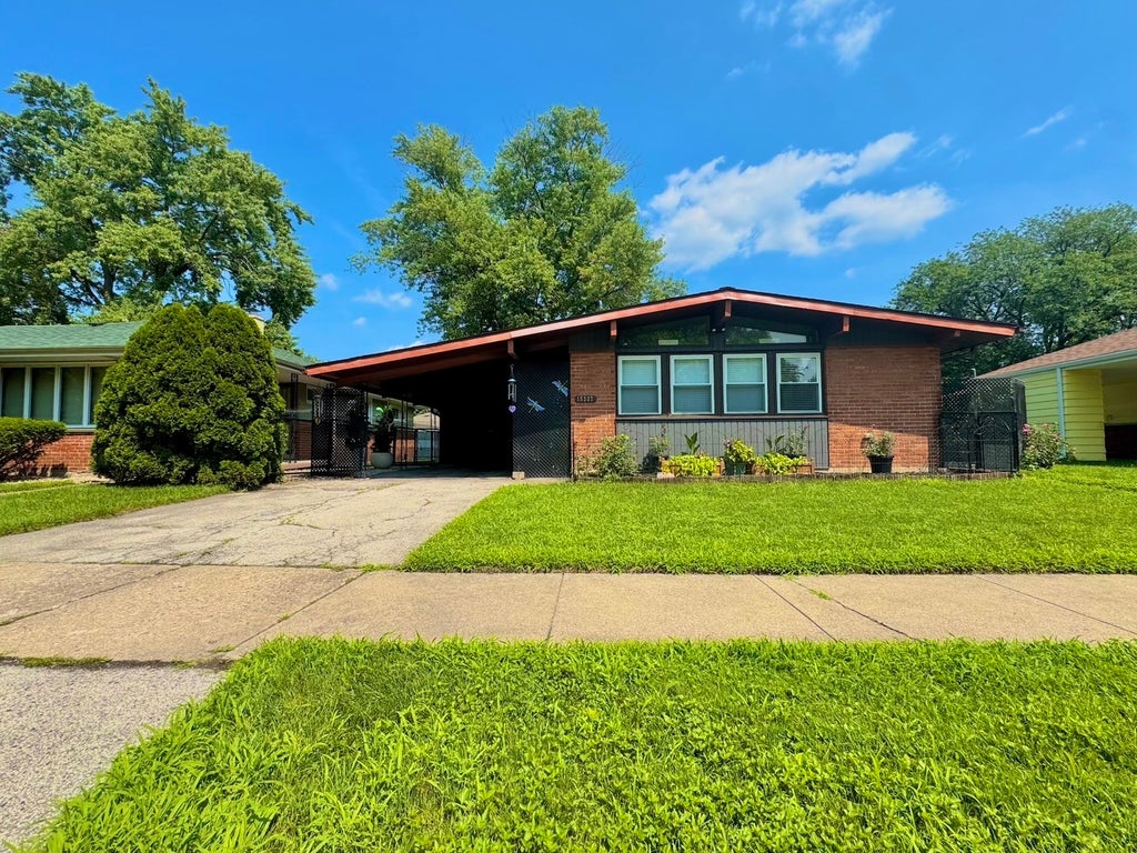 Welcome to 15307 Hastings Drive, a beautifully updated California ranch tucked away on a picturesque tree-lined street in a highly convenient location. Ideally situated between 154th Street and Sibley Boulevard, this home offers quick access to I-80/94, shopping, dining, public transportation, and schools including South Suburban College. Enjoy the charm of professionally landscaped front and back yards filled with blooming roses, lilacs, hydrangeas, and young trees and shrubs. Inside, cathedral ceilings and abundant natural light create an open and airy feel throughout. The spacious living room features refinished dark-stained hardwood floors and a painted brick wood-burning fireplace, while the adjoining dining room offers the perfect space for everyday meals or entertaining. The eat-in kitchen was completely remodeled in 2021 and features quartz countertops, soft-close cabinetry, stainless steel appliances, luxury vinyl plank flooring, subway tile backsplash, and new blinds. A convenient half bath was also recently added for guests. Each of the three bedrooms offers vaulted ceilings, hardwood floors, and ample natural light, creating peaceful retreats throughout the home. The full bathroom has been tastefully updated with ceramic tile, a new vanity, updated fixtures, and a modern toilet. The laundry room includes updated lighting, and the entire interior was freshly painted in 2024. Additional updates include new windows and a new roof in 2021, new gutters in 2023, and a newer furnace, air conditioning system, and water heater. Enjoy the outdoors from the covered front porch or unwind in the fully fenced backyard, which offers privacy and space for relaxing or entertaining. A covered carport adds convenience and protection for your vehicle. With a well-balanced layout, thoughtful improvements, and a location close to everything, this move-in ready home offers comfort, style, and incredible value in one of the area's most convenient neighborhoods.