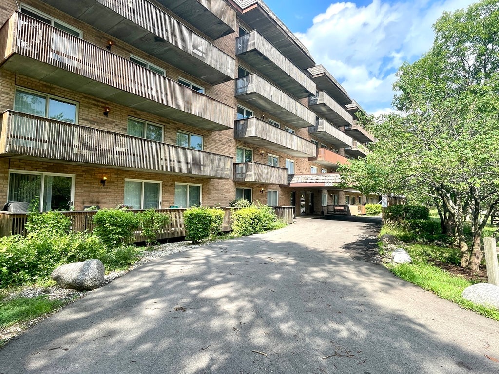 Incredible private views within the serene LAKE IN THE WOODS. This AS IS updated top floor corner end-unit offers 2 bedrooms, each with private access to the NEWLY RENOVATED BALCONY! 3 large sliding doors with access to a spacious living area and bedrooms brings in natural light! Modern full bath and one-half bath with new in-unit laundry (2025). Freshly painted with LVP throughout with carpeting within the over-sized primary bedroom. Renovated kitchen with SS appliances, newer dishwasher (2022), pull-out cabinet drawers, lighting under cabinets. Separate eating/dining area. Walk-in closet for great storage. Maintained HVAC unit and water heater (2018). Elevator building with many amenities: heated garage with designated parking, secure storage adjacent parking space, along with a gated storage area. Beautifully, well-maintained landscaped grounds with water features and benches. CATS OK! No Dogs! This is a must-see!