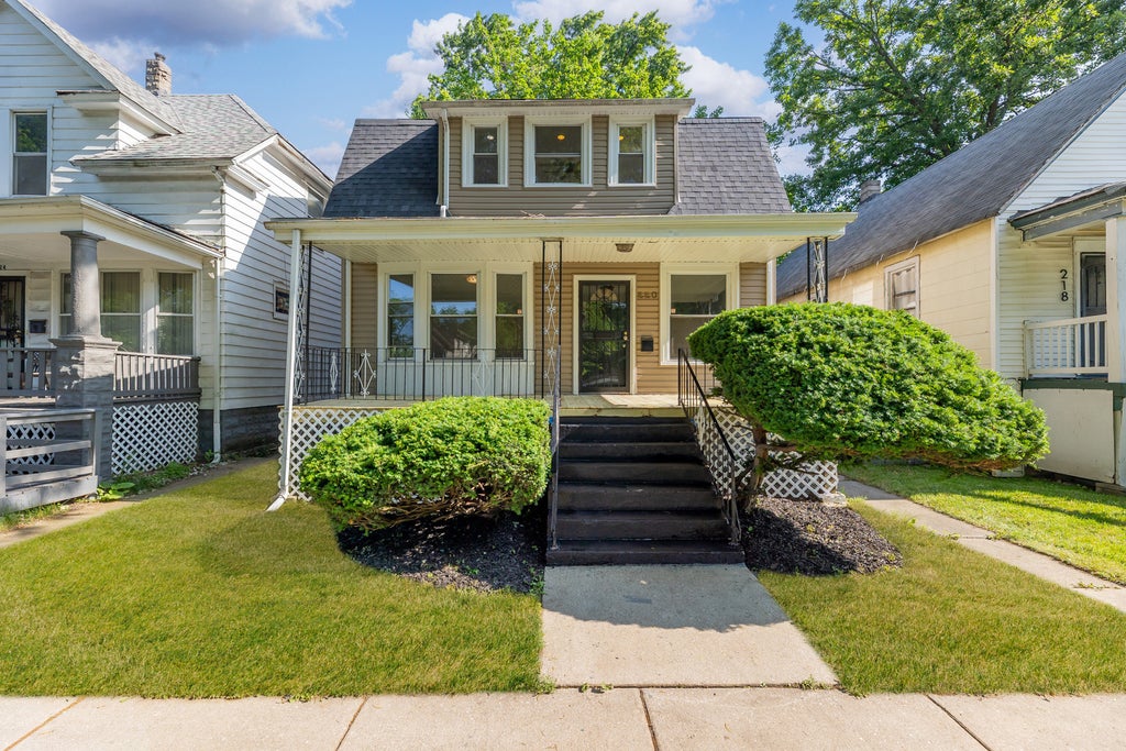 Priced to sell! Located in one of Chicago's historic neighborhoods, this UPDATED early 20th-century American Foursquare home reflects the solid craftsmanship of the era with a wide front porch, classic dormers, timeless curb appeal, newer roof (2023), newer windows (2018), newer furnace (2023), newer 2nd bathroom (2023) and new water heater (2024). UPDATED throughout, this home also features a light-filled living/dining room combo and updated kitchen with modern cabinetry and stainless steel appliances. The improved basement offers a flexible space for a family room and a finished room for a 5th bedroom, home office, or workout room. Outside, the extra wide lot offers an expansive yard with plenty of space for entertaining. Located close to I-94, I-57, public transportation, Metra and the soon to come, Red Line. LOW TAXES. Home is being sold as-is.