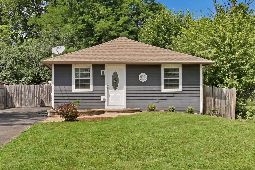 Your perfect blend of comfort, style, and convenience awaits! This beautifully maintained ranch offers true one-level living with 3 bedrooms and 2 full bathrooms. Gleaming hardwood floors flow throughout, creating a warm and inviting atmosphere. The updated kitchen impresses with rich wood cabinetry, Corian countertops, a stylish backsplash, chic island lighting, and stainless steel appliances-perfect for cooking and entertaining. A spacious family room seamlessly connects to the kitchen, providing an ideal space for gatherings. Enjoy the ease of a first-floor laundry room just steps away. Out back, a stunning 26x26 brick paver patio overlooks the fully fenced yard, complete with a storage shed and well-maintained landscaping. The extra-long driveway offers plenty of parking, and the home's curb appeal shines with Hardie board siding, a newer roof, and lush plantings. Freshly painted in today's popular colors. Roof and siding are approximately 10 years old for peace of mind. Walking distance to Gages Lake and close to highways, shopping, restaurants, and schools. Move-in ready and brimming with charm-schedule your showing today!