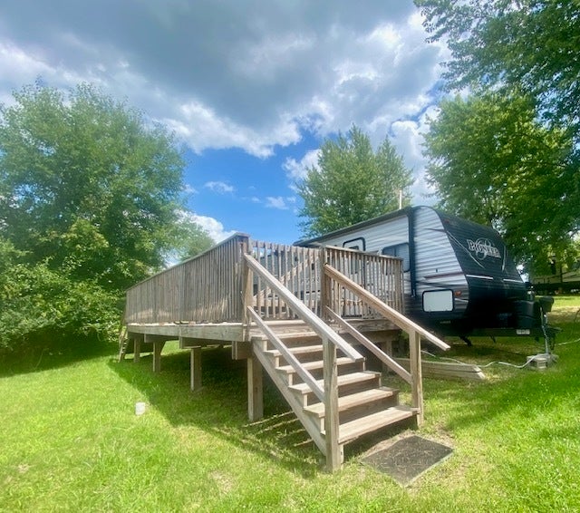 This unique package offers loveliness and location! Let's begin with a beautiful 2018 Pioneer QB300 Travel Trailer that includes a rich modern decor, a master bedroom and a roomy bunk room. There's a lovely large deck in place-perfect to enjoy some company and conversation. Sit back, relax and escape with a good book in the spacious back of the lot. The location boasts of close to a comfort station, a walking trail that leads to the beach, pool #2 and the Family Center! Don't allow this gem to get away-call for a showing today! Gated facility-must be accompanied by a Real Estate Broker to view listing. Property owner is responsible for yearly assessments. This is not a homestead property.