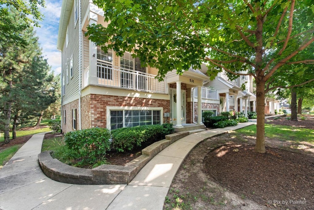 Captivating 2-story, end unit townhome offers 3 bedrooms, a loft, 2.5 bathrooms, private balcony and attached 2-car garage. A private entrance leads inside to an open living and dining area with gleaming hardwood floors, fresh paint and plenty of windows for natural light. The kitchen has ample stylish white 42" cabinets and granite counters, stainless steel appliances and eat-in area with glass slider access to the private balcony. Enjoy the end unit views! Upstairs is the spacious master retreat with volume ceiling, new floors, large walk-in closet and ensuite bath with separate shower, soaking tub, dual sink, vanity and skylight. A 2nd bedroom, roomy loft with a skylight and full hall bath with shower over tub combo completes the upper level. Downstairs is a 3rd bedroom, laundry area and interior access to the attached garage. Take a walk around the beautiful grounds or ponds. Nearby Route 64 with shopping and dining galore!