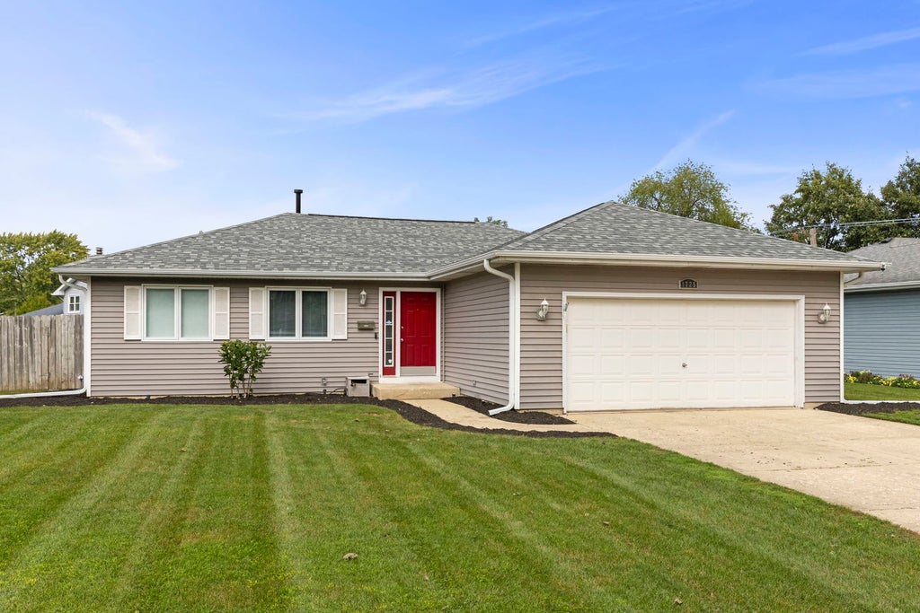 Beautiful ranch home, move-in ready! White trimwork, updated hardwood flooring and casement windows throughout! Dramatic vaulted, beamed living room with skylights and updated ceiling fan/light plus huge picture window. The bright kitchen has stainless steel appliances, lighted ceiling fan, TONS of white cabinets and bayed French door, flanked by windows, to the huge deck. The primary suite features dual windows, overhead fan/light fan and private bath. Spacious secondary bedrooms have terrific closet space and convenient access to the hall bath. Relax, unwind and entertain in the finished lower level rec room with huge wet bar! Additional room is perfect for play room, office or exercise. Unbelievable storage room with laundry! Escape to the outdoors on the large deck overlooking the private fully-fenced yard. Love where you live! Don't miss this one!