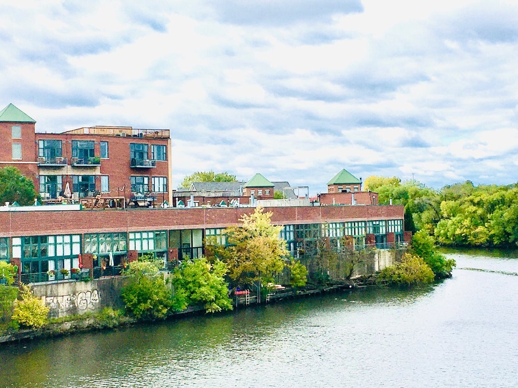 SEE MATTERPORT 3D TOUR & VIRTUAL TOUR. Largest unit in the building - 2 separate units were combined by the developer to make a spacious 1800 square foot 3 bed 2 bath penthouse unit that overlooks the Chicago River. This lofted unit has a great split open floor plan, updated kitchen, high ceilings, exposed brick, hardwood floor and huge windows throughout. There is a private deck off the living room and a 2nd deck off the primary bedroom, along with a huge common roof deck for the residents' enjoyment. This is an elevator building and comes with one heated garage parking space (#32). This gated community has launch access for kayaks into the river. Perfectly located between Logan Square, Roscoe Village and West Lakeview, this home has easy access to the highway. The Diversey bus will quickly take you to either the Blue Line West or the Brown Line east Pet friendly and much more!