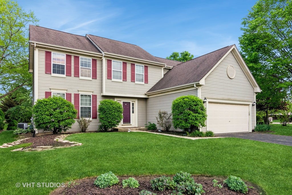 Batavia schools! White kitchen cabinetry. 4 bedrooms, 1st floor laundry, formal living & dining room. 2 car garage with extra space, partially finished basement. Popular sun-drenched Lakota model. Rare, fully excavated basement. Enjoy every season, thru the abundance of windows. Foyer, coat closet, ceramic tile. 1st floor laundry, cabinets, double sink, door to garage. Dramatic vaulted ceiling in family room, open to kitchen. Kitchen with island, stainless steel appliances, pantry closet. Primary suite is huge with generous walk in closet, large enough for a king size bed, vaulted ceiling. Primary bath with double sink, step in shower, soaker tub. 2nd bedrooms with large closets. They share the neutral, full hall bath, tub/shower. Basement is tastefully finished with a bedroom (egress window), or suitable for an office and recreation room. Storage galore in the giant unfinished portion. Enjoy the backyard deck, swing set stays. Updates: '23 oven, microwave, '22 furnace, air conditioning, '21 H20. Flat, usable, private yard-no backyard neighbor in sight. Fidler Park is steps away or use the walking trail around the pond, picnic in the park under the Gazebo. Located close to I-88, shopping, restaurants, Outlet mall.