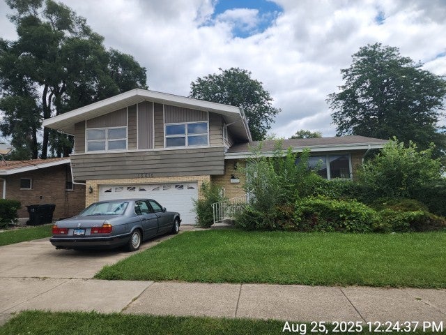 See the potential in this split level home in South Holland. This home has 3 bedrooms and 1.5 bathrooms. There is a large living room and dining room area. Potential for an open concept on main level. Large family room and additional living space. 2 car attached garage. Home is very close to schools, shopping and the interstate. This home is being sold as is and room sizes are estimated. Make this one yours!