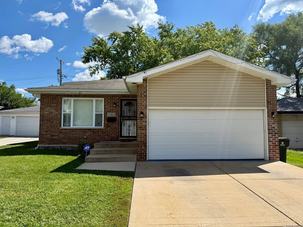 Well-maintained 3-bedroom, 2-bath bi-level home in Hazel Crest, built in 2007 and thoughtfully updated for today's buyer. Step inside to a bright main level with large windows and brand-new flooring throughout. The kitchen stands out with dark wood cabinetry, sleek white quartz countertops, and all-new 2025 stainless steel appliances (refrigerator, stove, dishwasher). A sliding glass door leads to a backyard with mature trees and a patio, perfect for outdoor living. Direct access to the freshly painted 2-car garage provides added convenience. The upper level offers three comfortable bedrooms and a modern full bath. The lower level features a spacious family room with a cozy fireplace, a second full bath, laundry/utility room with washer, dryer, utility sink, and additional storage. Recent updates include refreshed bathrooms with quartz vanities, modern lighting, and neutral finishes that make this home move-in ready. With generous living space, an inviting yard, and a convenient location, this home blends comfort, updates, and functionality. Sold As-Is!