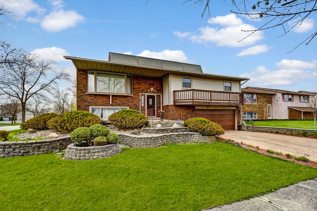 The clock is ticking-don't let time run out on this special opportunity! This large and expanded raised ranch features an attached 2-car garage, plus a side drive leading to a second, 2-story heated garage with a walk-up second level-perfect for weekend mechanics, extra cars, toys, or hobbies. The house welcomes you with a gracious foyer and stairs leading to the main level, where you'll find a spacious L-shaped living and dining room combo. The main level also includes three bedrooms and two bathrooms, featuring a primary bedroom with an ensuite bathroom and walk-in closet. A large eat-in kitchen opens into a versatile room addition, ideal as a family room or an expanded dining area. The ground-level lower level offers even more space with a third bathroom, a recreation room, an enclosed back porch/sunroom, an office/storage room, a utility room, and an adjacent extra storage room. Updates include a newer roof on the house (2022) and garage (2019). Rare finds like this don't last long-bring your personal touch and make this your new home today!