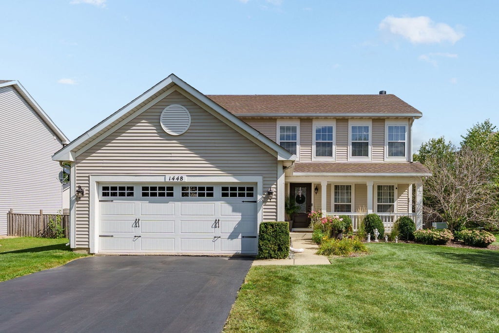 Welcome to 1448 Sedge Pass Lane, a beautifully updated 4-bedroom home designed for both comfort and everyday living. With over 2,000 sq. ft. plus a full basement ready to make your own, this home offers plenty of space to spread out and make memories. The heart of the home is the remodeled kitchen (2019), featuring quartz countertops, sleek KitchenAid appliances, and a thoughtful layout perfect for both weeknight dinners and weekend entertaining. In 2025, additional built in cabinets and a stunning coffee bar with a quartz waterfall edge was added, a cozy corner that's sure to become your morning favorite. Enjoy peace of mind with updates already done for you: new laminate flooring (2022), stylish light fixtures, new garage/front/sliding doors, and a freshly designed stamped concrete patio with a brick firepit that's ideal for summer BBQs and evenings under the stars. Don't forget the owned solar panels (no payments!) that keep utility costs low. This home doesn't just shine inside; step out to a professionally landscaped yard, or take a short walk to the clubhouse, pool, ponds, and walking trails. It's a community that truly feels like home. Updates include: Kitchen remodel (2019), Coffee bar and built in shelving (2025), Stamped concrete with brick fireplace (2017), Garage door and front door (2020), Laminate flooring throughout first floor (2022), Light fixtures throughout first floor (2022), Hot water heater (2019), Kitchen sliding glass door with built in blinds (2020), Refrigerator (2022), Paid off solar panels, Back up sump pump.