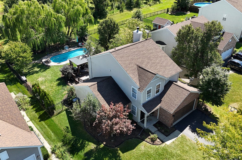 Longtime owners offer this fantastic 2 story home with inground pool situated on a totally private lot backing up to golf course! 5 total beds plus 4 total baths! Main floor features two story foyer with plantation shutters, large living room with hardwood floors, oversized white trim, vaulted ceilings and antique sliding barn door! Elegant formal dining room with hardwood floors and vaulted ceiling! Open concept eat in kitchen features 42 inch cabs, granite counters, ceramic tile backsplash, large breakfast bar and SS appliances overlooking cozy family room with fireplace with updated mantle! 1st floor powder room plus laundry-front load washer/dryer stays! 2nd floor features 4 bedrooms all with hardwood flooring! Primary suite has cathedral ceilings, WIC plus updated full bath with double sinks, vanity and flooring! Updated 2nd floor full bath too! Basement is finished and has large Rec Room area with trey ceilings, full bath plus 5th bed! Attached two car garage with newer garage door! Stunning backyard oasis features large deck with gazebo overlooking your very own inground fiberglass pool, koi pond and firepit area! All with no neighbors behind you--backing to Broken Arrow Golf Course! Sold in AS IS condition. Opportunity is knocking...will you answer?