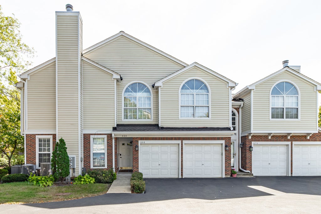 Beautiful end-unit ranch townhome tucked away in the most private location of the subdivision! This bright and inviting home features a spacious open-concept living and dining room with a cozy fireplace, perfect for relaxing or entertaining. The kitchen offers plenty of cabinet space, a sunny eating area, and convenient exterior access to the patio for seamless indoor/outdoor living. The primary suite boasts a private ensuite bath, while two additional bedrooms share a full hall bath. Laundry room in the hallway. Modern, neutral finishes flow throughout, creating a fresh and move-in-ready feel. Enjoy a huge 2-car attached garage plus 2 additional community parking spaces right outside your door. The corner unit setting provides extra privacy and a spacious backyard patio for outdoor enjoyment. Located in award-winning school districts, just a short walk to the park, and minutes from the Metra, shopping, and dining. A rare find in a prime location-this one is truly a must-see!