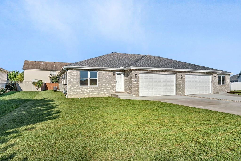 **Stunning New Construction Brick Ranch Duplex in Quiet Subdivision** Welcome to this beautifully crafted, brand-new brick ranch duplex nestled in a peaceful subdivision with access to highly desirable schools. This thoughtfully designed home features an open-concept layout that seamlessly connects the living, dining, and kitchen areas-perfect for entertaining and everyday living. Luxury vinyl tile flows throughout the entire home, offering durability and elegance. The kitchen showcases on-trend cabinetry that blends soft greys and warm tans, accented with brushed brass fixtures, quartz countertops, a breakfast bar, and a spacious pantry closet. Sliding glass doors open to a private patio and a perfectly sized backyard with fresh sod-ready for outdoor enjoyment. The home offers 3 generously sized bedrooms, including a master suite with a walk-in closet, double vanity, and an oversized walk-in shower. A full guest bath and convenient main-floor laundry add to the home's functionality. The large unfinished basement provides endless possibilities-whether you're dreaming of a rec room, home gym, or office-and a partial crawl space offers additional storage. An attached 2-car garage completes the package. Enjoy peace of mind with the benefits of new construction-no updates needed, no surprises-just move in and make it your own!
