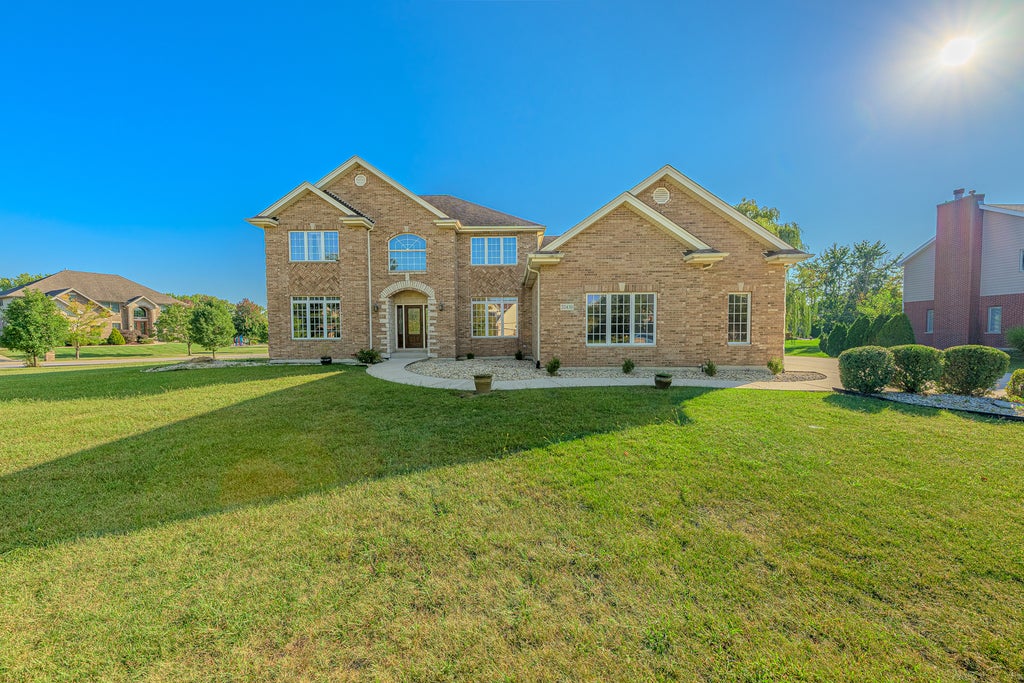 Welcome to this custom 2-story home in Lakeview Estates of Frankfort, perfectly set on an oversized corner lot adjacent to North Park with a playground and scenic pond. The inviting interior boasts 9-foot ceilings, arched entries, rounded corners, hardwood flooring, and 6-panel doors throughout. An open floor plan seamlessly connects the two-story foyer, formal dining room, formal living room, family room with cozy fireplace, and a well-appointed kitchen with an island, granite counters, stainless steel appliances, and walk-in pantry. A main floor bedroom or flex space offers versatility for an office or guest room, while the second floor features 4 spacious bedrooms including a serene master suite. The finished basement adds to the living space with a theater room and abundant storage, while the backyard provides a large deck for entertaining and outdoor enjoyment. Completing this impressive home is a 3-car garage and a desirable location just minutes from Downtown Frankfort, beautiful parks, and the award-winning Lincoln-Way School District.