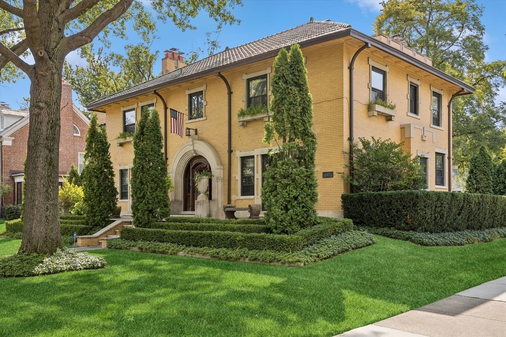 Built in 1924, the Charles Castle House is one of Oak Park's most admired homes. Beautifully renovated while preserving the exquisite architectural detail of its Italian Renaissance Revival style, this home impresses at every turn. The resort-style outdoor space, replete with a newer in-ground pool, is reminiscent of a Tuscan villa, yet is situated in the heart of Oak Park's renowned Frank Lloyd Wright Historic District. With over 5000 square feet of living space, the home features 5 en-suite bedrooms and 5 1/2 baths. Step inside the grand foyer with its original ceiling mural and take it all in. Gracious living and dining rooms, a charming Florida room, and a custom gourmet kitchen with high-end appliances and adjacent breakfast/game room provide the setting for elegant, yet comfortable living. Ascend to the second floor to find a split floor plan with a 4-room primary suite including sleeping quarters, a spa-like marble bath with steam shower, a huge dressing room with dual walk-in closets, and a relaxing sunroom overlooking the home's magnificent grounds. Three additional ensuite bedrooms round out the second floor. The third floor houses a private guest suite with newer full bath. On the lower level you'l find a huge rec room, office, workout room, full bath and more. Some of the many remarkable features of this home include: buried fiber optic cable, a reverse osmosis drinking water system, whole-house backup generator, overhead sewers and ejector pump, irrigation and drainage systems, zoned AC, and 200 amp electrical service. Within walking distance of shopping, dining, schools and transportation--and just 25 minutes to the loop, O'Hare and Midway, 647 Linden Ave is truly a must-see for the discerning buyer.