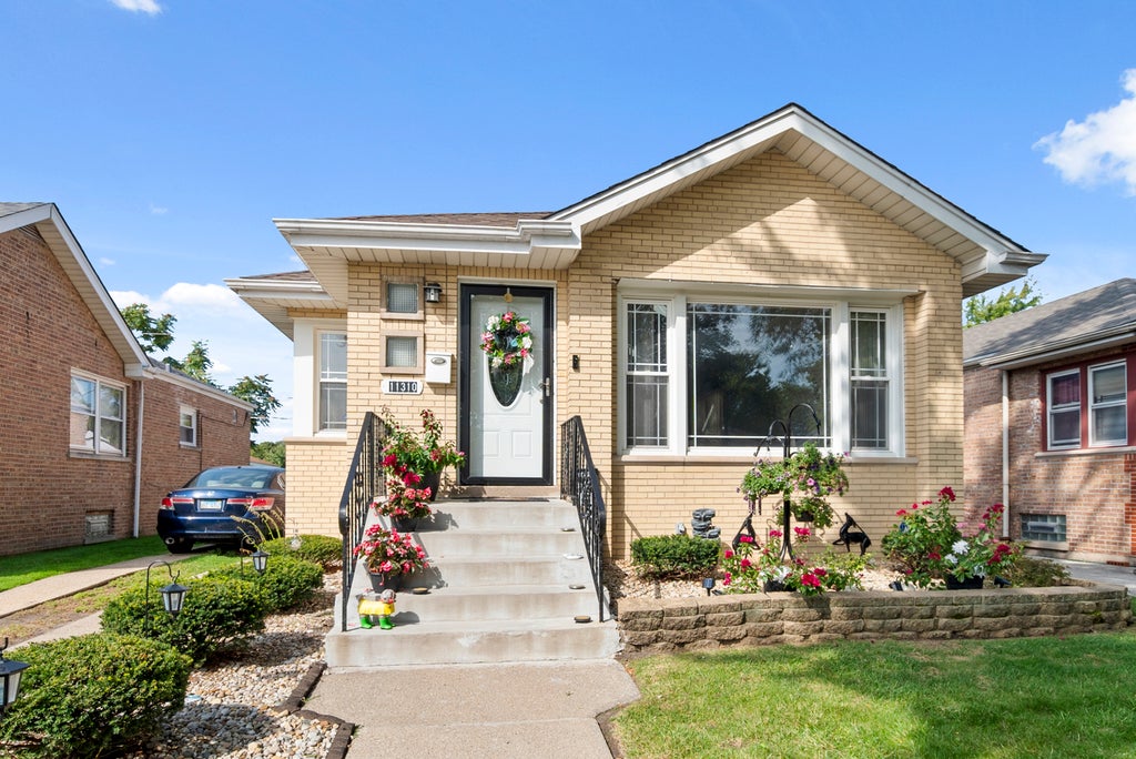 Welcome to this completely updated, one-of-a-kind brick bungalow that is sure to impress! From the moment you walk in, you'll be in awe of the soaring vaulted ceilings accented by skylights that flood the main level with natural light. The spacious open-concept living room features a stunning bay window, while the updated eat-in kitchen is a true showstopper with breakfast bar, soft-close cabinetry, quartz countertops, tile backsplash, and stainless steel appliances. The dining area is generously sized to accommodate a large table, perfect for entertaining family and friends. Three well-appointed bedrooms and a fully updated hall bath featuring modern finishes, stylish tilework, and updated fixtures complete the main level. The finished basement expands the living space and offers endless possibilities. A large family room with recessed lighting provides the perfect spot to relax or host gatherings, while the separate rec room can be used as a home gym, game room, or hobby space. A private fourth bedroom offers a great option for guests or extended family, and the convenient laundry area includes plenty of space for organization and storage. Completing this level is a fully updated full bathroom with contemporary finishes, creating the perfect balance of style and functionality. The exterior of this home is just as impressive as the interior. Professionally landscaped, the fenced backyard is a true retreat designed for relaxation and entertaining. The spacious patio with gazebo creates a shaded outdoor living area ideal for dining or lounging. A storage shed adds practicality, while the 2-car detached garage not only provides ample parking and storage, but also features an exterior projector screen for even more entertainment options-perfect for summer evenings with family and friends. Ideally located near shopping, the train, and interstate access, this home blends style, comfort, and convenience. Don't miss your chance to make this one-of-a-kind brick bungalow your new home!