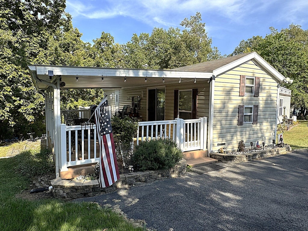 Welcome to Lot 561 at Woodsmoke Ranch-featuring a charming and unique 2008 Breckenridge Jack and Jill Park Model with 3 bedrooms providing enough room to sleep 8! This amazing property is perfectly located in a cul-de-sac in the rear of the campground backing up to a forest of trees! Your asphalt driveway was just sealed last year and can hold 3 vehicles plus there is additional parking in the center of the cul-de-sac. Inside, you'll find a cabin style decor featuring a spacious master bedroom with a queen-size bed, a built-in dresser and a wall of closet space. The other 2 private bedrooms are bunk style with full-size beds and each with a built in dresser, ideal for hosting gatherings or guests. The eat-in kitchen includes all appliances: a full-size refrigerator, 4-burner stove/oven and a microwave that all stay with the home. The living room has a sleeper sofa and a recliner that also stay. Step outside to enjoy the HUGE 31x13 covered maintenance free deck with bamboo style shades...creating the perfect spot for relaxing or entertaining. The property is being sold fully furnished to include the sleeper sofa, recliner, kitchen table mattresses and more! Central A/C and heat are in excellent working condition (furnace just serviced and rebuilt). Master bed and lower bunk mattress are new. Storage shed with electric is perfect for additional storage. This is a Category 2 lot with yearly dues of $1770.46, which include water, electric, garbage, and access to all the incredible amenities Woodsmoke Ranch has to offer. Woodsmoke Ranch amenities: 2 pools, 2 stocked fishing ponds, 3 pavilions, basketball courts, sand volleyball, gaga ball, bags, 2 playgrounds, RC car racetrack, baseball field, laundromat, convenience store, cafe, horse stables (for rent), adult lounge. Amazing events planned all year long. RV campground community, cannot be a primary residence. Gated community; showings by appointment only. No access without an appointment.
