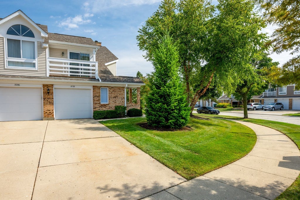 Beautiful second story end unit with private entrance. Volume ceiling. Bright with plenty of windows and light. Luxurious eat-in kitchen with new cabinets, quartz counters, tile back splash, exhaust and appliances. Dining area. Vinyl plank flooring. Freshly painted. Elegant light fixtures as well as recessed lighting. Tiled fireplace. Custom window treatment will stay. Master bedroom with sliding door to 2nd balcony. New vanities and fixtures in baths. In-unit laundry with washer, dryer and sink. 2 balconies. Garage. Long concrete driveway. Convenient location. Excellent schools. Roof, windows about 1 year old.