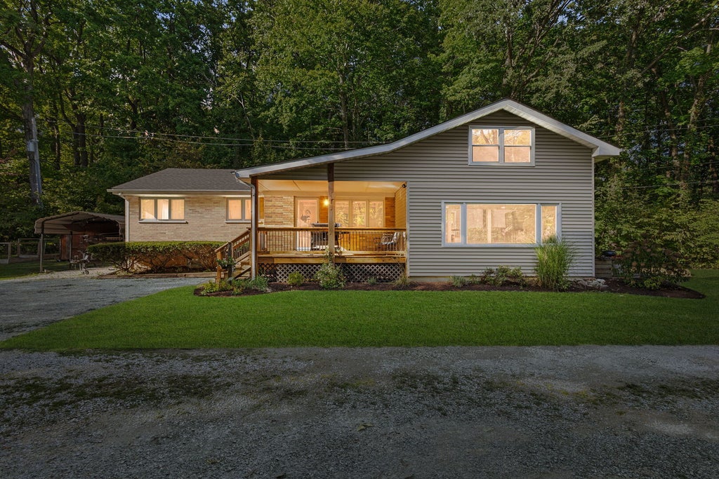 Serene and very private setting! Secluded on a very nicely wooded acre plus lot! A stream on the property feels like you are immersed in nature. You can move right into this home featuring a gorgeous kitchen which features beautiful, upgraded cabinetry, countertops and backsplash. Loads of custom woodwork, trim, crown moldings, staircase, etc. Open loft for fun space! Living room features a modern wood burning stove. Sliding doors to the deck. Newer roof, siding, furnace, CAC and water systems, Entire home has been very nicely remodeled. Basement is great for storage as well as many other uses. Carport and shed will stay providing great storage! Multiple offers received. Highest and best offers due by 6pm Tuesday September 23rd at 6pm.