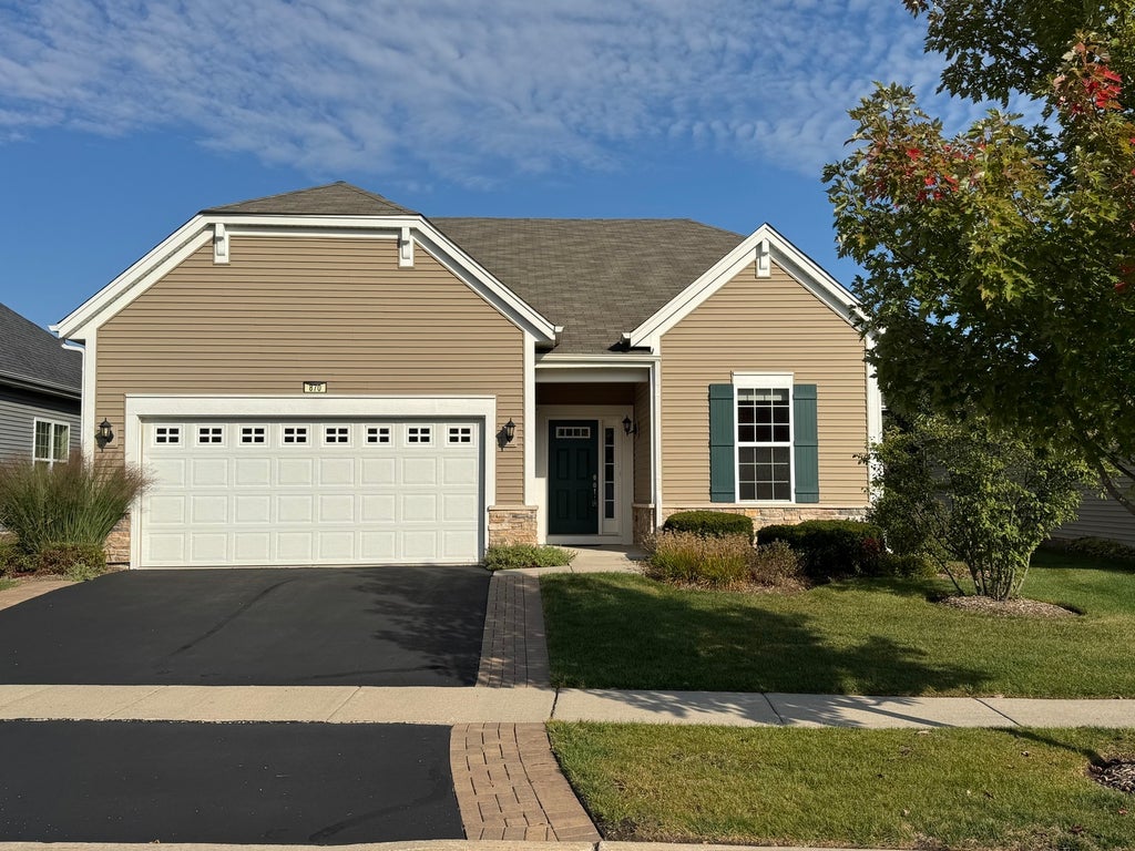 If you like the idea of low maintenance living, but like the freedom of a single family home, this place is for you! Welcome to the 55 and up community of Carillon. This very popular Monte Carlo model has 2 car heated garage, 2 bedrooms and an office. The kitchen features vaulted ceilings, granite counters, and glass backsplash. You have a dining area as well as an eating area in the kitchen, making it a great set up for entertaining! Need some quiet time? Curl up with a book in the sunroom and enjoy all of the bright light streaming in. Enjoy a relaxing soak in the walk-in tub by Ella Bubbles. The living room and office feature motorized blinds which can be controlled with a remote or your phone. The Aprilaire Humidifer was installed in 2024. If you are an outdoor person, you can enjoy grilling with a gas grill hook up in the back on your beautiful extended patio. This lot is very private for the area! Mature landscaping and trees make this a relaxing retreat. The community features a 3 hole golf course (exclusively available for residents and their guests), indoor and outdoor swimming pools, work out room, billiards, community room (with loads of activities), tennis/pickleball courts and more! If you enjoy walks, there are sidewalks throughout the community and approximately 2 miles of walking/biking paths around the community ponds. Snow removal and lawn care are included as well in your monthly assessment, allowing you do just move in and relax! Welcome home!