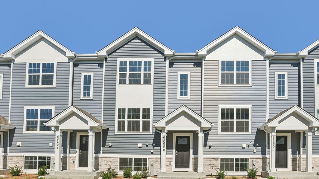 Find yourself at 6560 Linden Trail - Unit D in Wonder Lake, Illinois, a beautiful new home in our Stonewater community. This townhome is ready for an Immediate move-in! Homesite includes a fully sodded and landscaped yard that is maintained throughout the year as well as snow removal in the winter. The McKinley townhomes plan offers 1,579 square feet of living space with 2 bedrooms, 2.5 baths, a loft, and a finished flex room. Walking up to the main level, you will find this home's open concept living space. The expansive kitchen overlooks both the front dining and back great room areas, making it the ideal space to entertain. Step outside onto your balcony, relax and enjoy your morning coffee. Additionally, your kitchen features designer cabinetry with soft close doors & drawers, a spacious island with quartz countertops, and pantry. Walking upstairs enjoy your private get away with your large primary bedroom on its own side of the second floor with a en suite bathroom containing a raised dual quartz vanity and walk-in closet. Enjoy the convenience of a second-floor laundry, loft, and a secondary bedroom with a full second bath. Luxury vinyl plank flooring throughout the kitchen, bathrooms, and laundry. Impressive innovative ERV furnace system and tankless water heater round out the amazing features this home has to offer! All Chicago homes include our America's Smart Home Technology, featuring a smart video doorbell, smart Honeywell thermostat, smart door lock, Deako smart light switches and more. Photos are of similar home and model home. Actual home built may vary.