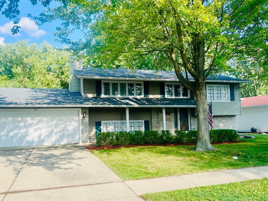 Great Elk Grove location on lovely street this 3 BR 2 Bath Northwestern model is waiting for you. Hardwood floors, LR with open floor plan to gourmet kitchen with plenty of cabinets, island and table space, brand new SS appliances, Patio doors to deck overlooking large fenced yard. patio and storage shed perfect for summer entertaining. 2 bedrooms w/lg closets, and full bath on main. Lower level features Family room to cozy up in front of the fireplace, primary bedroom suite with 12x5 huge walk in closet, full bath features walk in shower. this level has laundry room and access to attached 2 c garage. Come take a look!