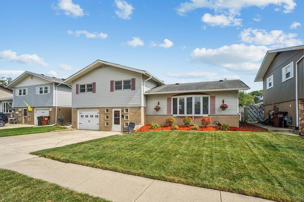 Come see this Bright & Spacious 4 Bed Split-Level in the Heart of Oak Forest with a Huge back family room addition! Wonderful flow on the main level from living room, through to the dining room, beautiful kitchen and into the back family room with vaulted ceilings. The family room overlooks the fenced-in back yard and features a screened in gazebo. The kitchen boasts stainless steel appliances, a movable island, and newer backsplash, sink and countertops. The upper level has 3 bedrooms all with Hardwood floors, the primary with double closets, and a large Full bath with double sinks and loads of countertops. Lower level features the laundry room, a half bath and a large 4th bedroom or Rec room. Recent updates include New LVP Flooring & Paint throughout (2022). New Gutters & Blinds (2023). New furnace (2022) New A/C (2025), electrical panel, dishwasher and shed. Professionally Landscaped Yard! Walking Distance to award wining schools and close proximity to the Metra and straight to the city. Great neighborhood! This is one you will not want to miss!