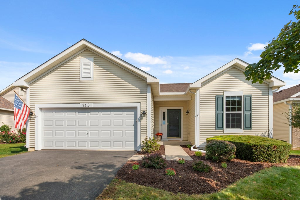 Fully Renovated 2-Bed/2-Bath Ranch in Premier 55+ Gated Community with Resort-Style Amenities. Move right into this beautifully updated ranch home where every detail has been thoughtfully designed for comfort, style, and ease of living. Step inside to find premium engineered hardwood flooring and fresh professional paint throughout, creating a seamless and inviting flow. The open-concept main level features a spacious eat-in kitchen with brand-new stainless steel appliances, stunning quartz countertops, and abundant cabinetry. A formal dining room and expansive great room with a cozy fireplace make entertaining effortless. The private primary suite offers a serene retreat with a newly renovated spa-style bath, modern fixtures, and a walk-in closet. A second bedroom and fully updated hall bath provide the perfect setup for guests or family. Conveniently located off the two-car attached garage, the mudroom/laundry area includes a new washer and dryer. Enjoy outdoor living on your private back patio-ideal for grilling, entertaining, or simply relaxing. The freshly painted basement offers abundant storage and future finishing potential. This home has been completely refreshed with upgrades including a newer roof, new hot water heater, updated toilets, new ceiling fans, LED lighting, modern fixtures, and smoke/carbon monoxide detectors throughout. Residents of this sought-after gated community enjoy resort-style amenities: a fitness center, indoor and outdoor pools, and a vibrant clubhouse with year-round activities. Don't miss your chance to own this move-in ready designer home with an award-winning layout in an active, private 55+ community. Schedule your private showing today!
